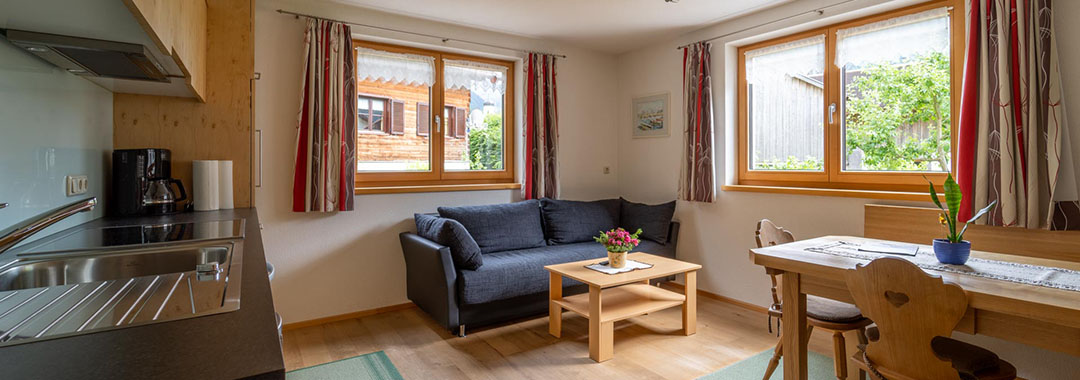 Treten Sie hinaus in den Garten und lassen die ersten Strahlen der Vormittagssonne auf sich wirken. Das 36 m² große Appartement Birke ist ebenerdig gelegen und nach Südosten ausgerichtet. Es ist tiptop ausgestattet mit Doppelzimmer, Dusche, WC und einer feinen Wohnküche mit Herd, Backofen, Mikrowelle, Kaffee- und Spülmaschine. Wohnen vom Feinsten.