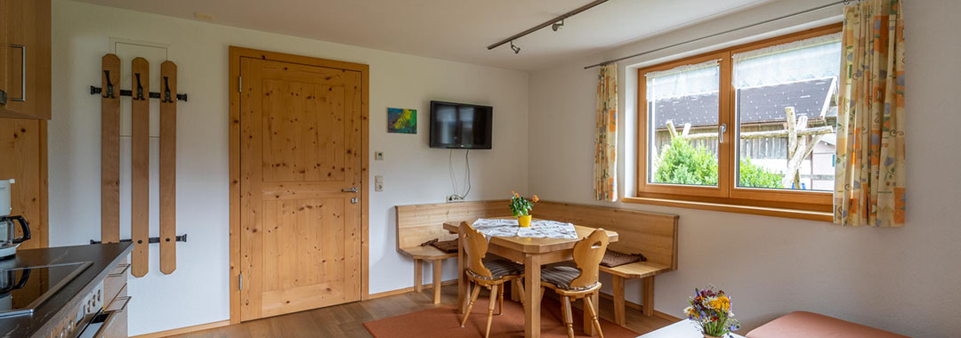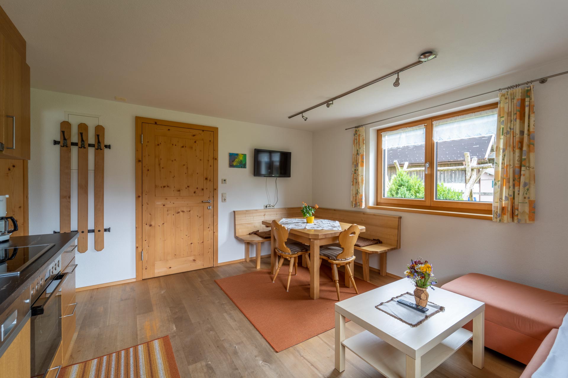 Das Appartement Esche blickt nach Südwesten. Die im Tiefparterre gelegene 2-Zimmer-Wohnung mit Gartenanteil ist komplett ausgestattet. Neben einem geräumigen Schlafzimmer samt modernem Bad mit Dusche und WC verfügt es auf 36 m² über eine gemütliche Wohnküche mit allem Drum und Dran (Herd, Backofen, Mikrowelle, Kaffeemaschine und Spülmaschine). Hier fühlen Sie sich wie zuhause.